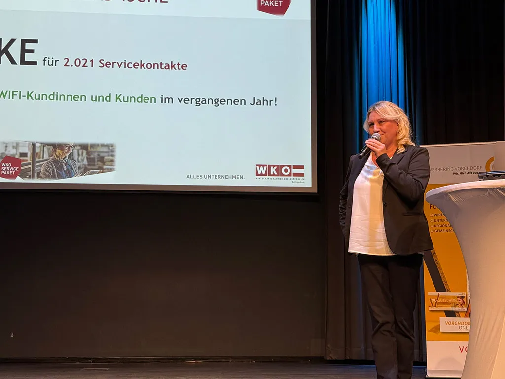 Sigrid Schuster von der WKO Bezirksstelle Gmunden eröffnete den Abend mit einem Überblick über Neuigkeiten und Entwicklungen innerhalb der Wirtschaftskammer. Im Anschluss präsentierte Werbering-Obmann Markus Müller die innovativen Überlegungen zur Weiterentwicklung des regionalen Einkaufsgutscheinsystems – vom bisherigen Werbering-Gutschein hin zum neuen „DerTraunsteiner“.