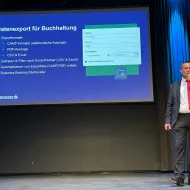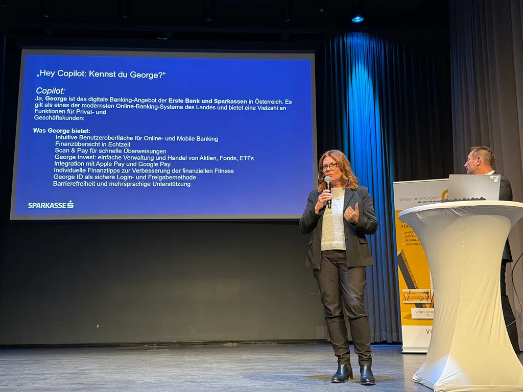 Mag. Ulrike Edelsbacher, Vorstandsdirektorin der Sparkasse Lambach, sowie Axel Stipsits gaben spannende Einblicke in „George Business – Österreichs modernstes Banking für Unternehmen“. Sie zeigten auf, welche neuen digitalen Möglichkeiten Betriebe künftig nutzen können.