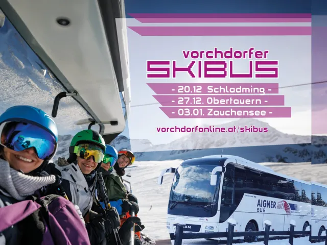 Abfahrt ist jeweils um 6:30 Uhr am zentralen Schulparkplatz in Vorchdorf (gegenüber dem Eingang OTELO). Dort stehen ausreichend kostenlose Parkplätze zur Verfügung. Am Ziel angekommen, steigst du direkt am Eingang des Skigebiets aus – ohne Parkplatzsuche, ohne Stress.