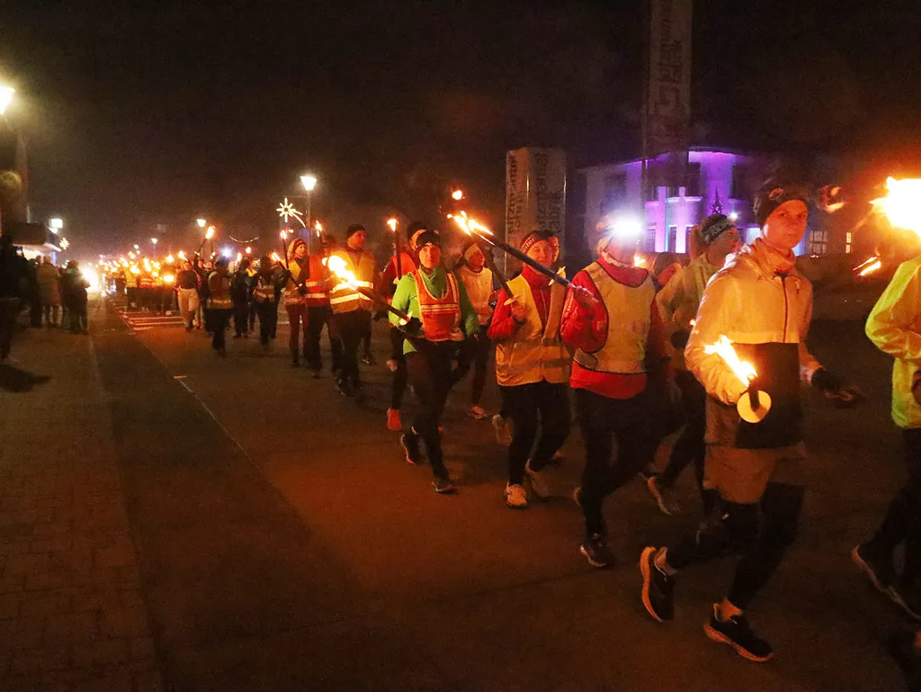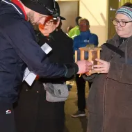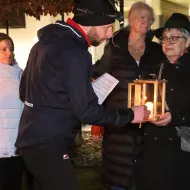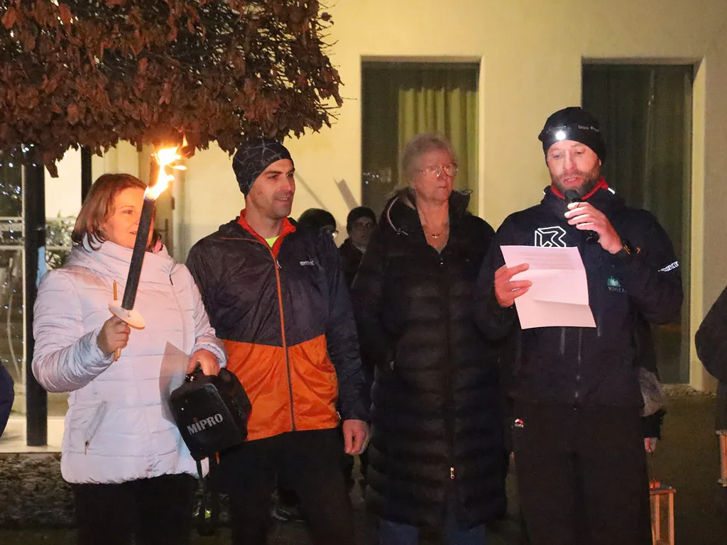 Für einen stimmungsvollen Empfang bei der Kitzmantelfabrik sorgte eine Bläsergruppe der Marktmusik. Der Fackellauf mit dem Licht aus Betlehem fand seinen feierlichen Abschluss mit der Übergabe an Ingrid Veress und Anita Seiringer, den Vertretern der katholischen und evangelischen Kirche.
