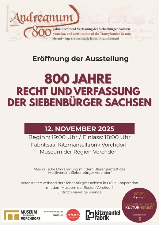 Diese Veranstaltung ist Teil des 13. Siebenbürgischen Kulturherbstes in Oberösterreich. Alle Termine finden Sie unter www.siebenbuergen.at