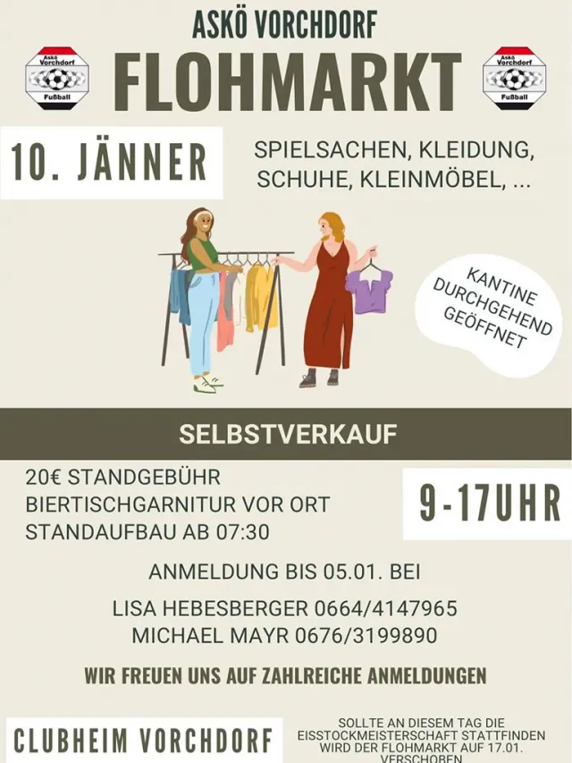 Sollte an diesem Tag die Eisstockmeisterschaft stattfinden wird der Flohmarkt auf 17. Jänner verschoben!