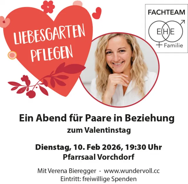 Datum Dienstag, 10.02.2026, 19:30 Uhr Wo Pfarrsaal Vorchdorf Veranstalter Fachteam Ehe und Familie der Pfarre Eintritt: Freiwillige Spenden Termin für deinen Kalender speichern (ics-Datei)