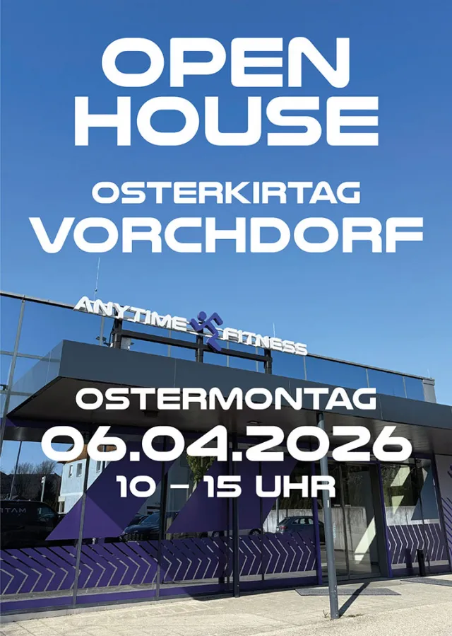 Datum Montag, 06.04.2026 , 10 Uhr bis 15 Uhr Wo Anytime Fitness, Bahnhofstrasse 18, Vorchdorf Veranstalter Anytime Fitness OPEN HOUSE beim OSTERKIRTAG am OSTERMONTAG Termin für deinen Kalender speichern (ics-Datei)