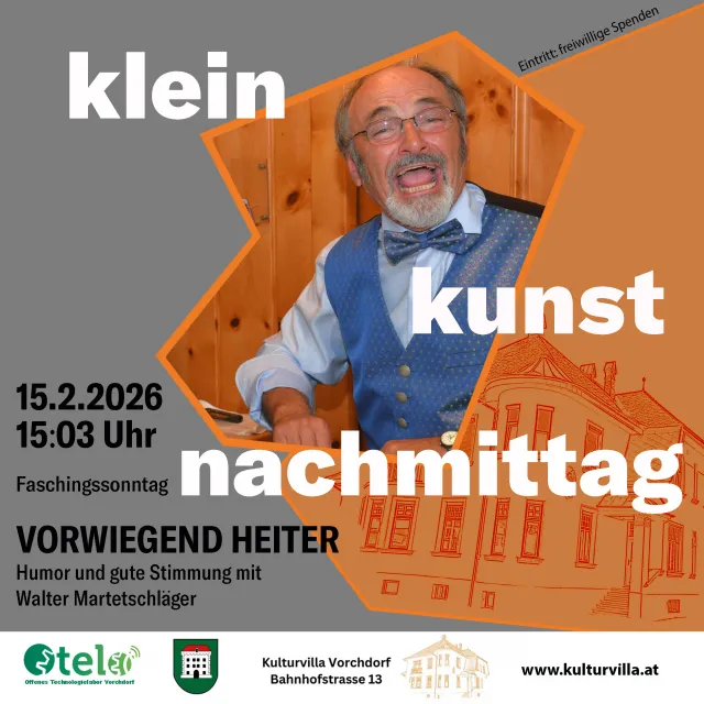 Gemütlicher Kleinkunstnachmittag voller Humor und guter Stimmung am Faschingssonntag mit Walter Martetschläger. Beginn pünktlich um 15:03 Uhr. Eintritt frei.