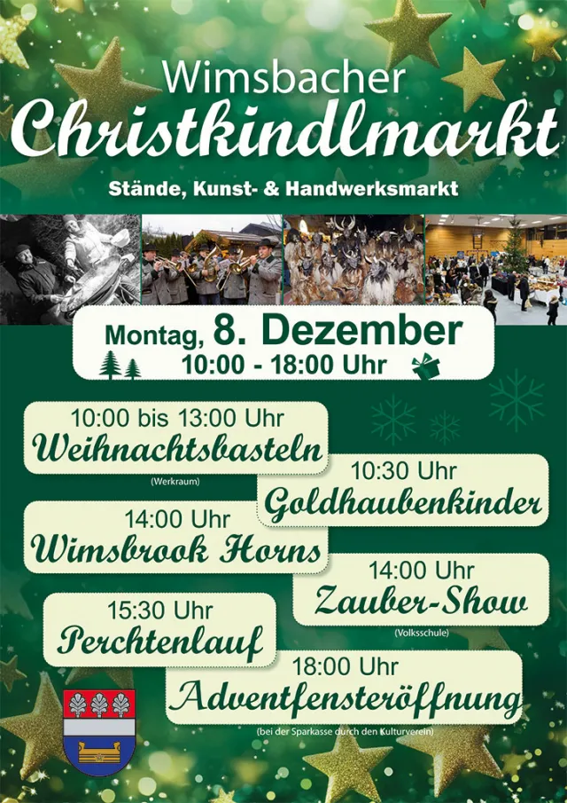 Datum Montag, 08.12.2025 , 10 Uhr bis 18 Uhr Wo Bad Wimsbach-Neydharting Veranstalter Marktgemeinde Bad Wimsbach-Neydharting Termin für deinen Kalender speichern (ics-Datei)